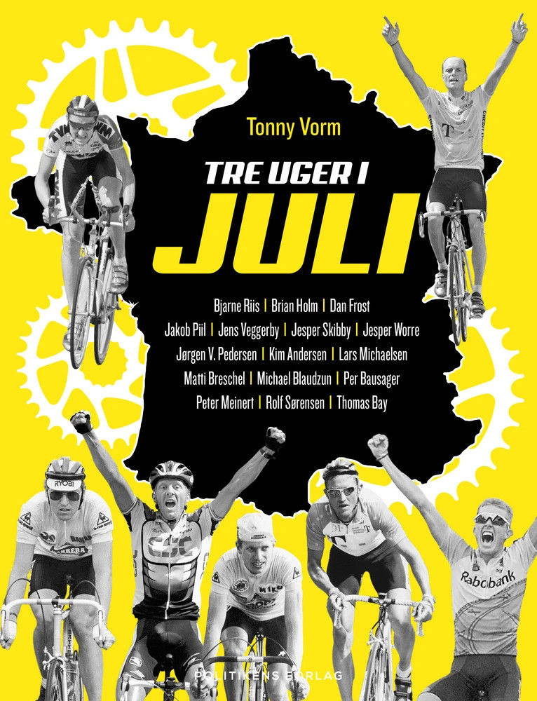 Tre uger i juli er et festfyrværkeri af cykelhistorier og et underholdende portræt af en sportsbegivenhed, der er mere populær end nogensinde. Bogen er skrevet af journalist og forfatter Tonny Vorm i samarbejde med blandt andre: Bjarne Riis, Brian Holm, Per Bausager, Rolf Sørensen, Jesper Skibby, Jens Veggerby, Jesper Worre, Jørgen V. Pedersen, Kim Andersen, Jakob Piil og Matti Breschel.