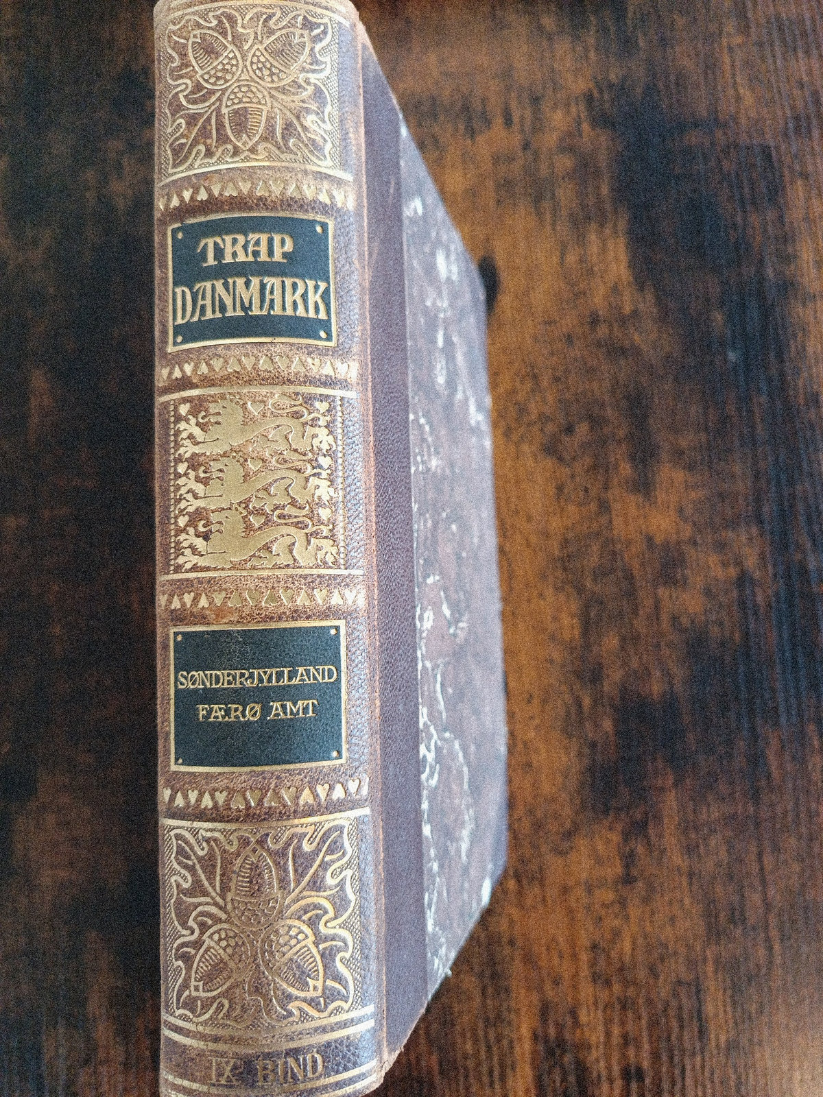Gad 1930. Pænt halvlæderbind, 726 sider. Trap Danmark, fjerde udgave. IX. bind: Haderslev amt, Tønder amt, Aabenraa amt, Sønderborg amt, Færø amt